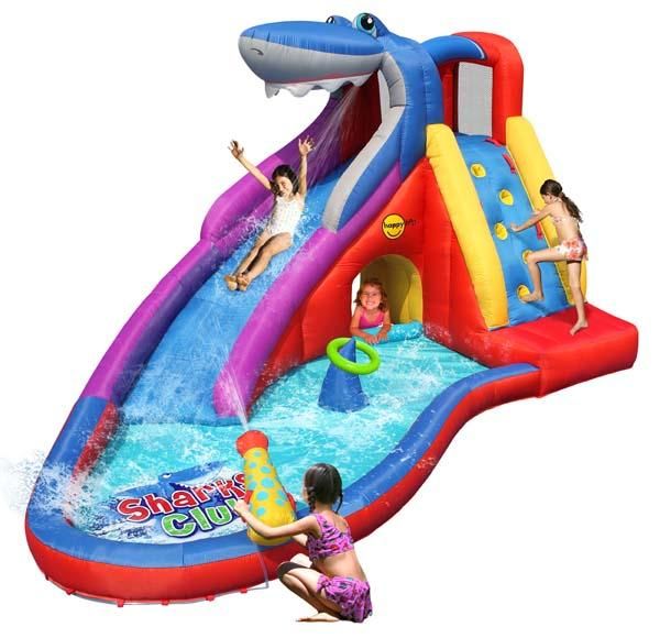 Un tobogán inflable acuático en forma de tiburón hacen un simpático inflable de nombre tibugán. Este divertido hinchable consta de la opcion de conectarlo a una manguera para poder convertirlo en un tobogan aquatico. Con el divertido cañón de agua pueden mojar a los amigos.