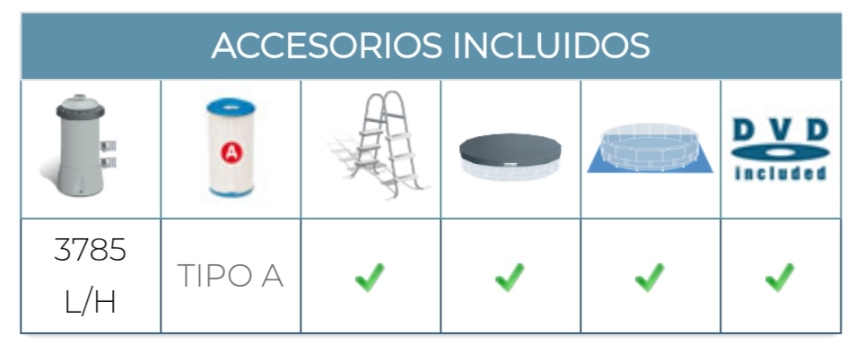 • Incluye depuradora de cartucho (capacidad de filtración de 5678 l/h y conexión de 38 mm) y sistema Hydro Aeration Technology, requiere filtros tipo A