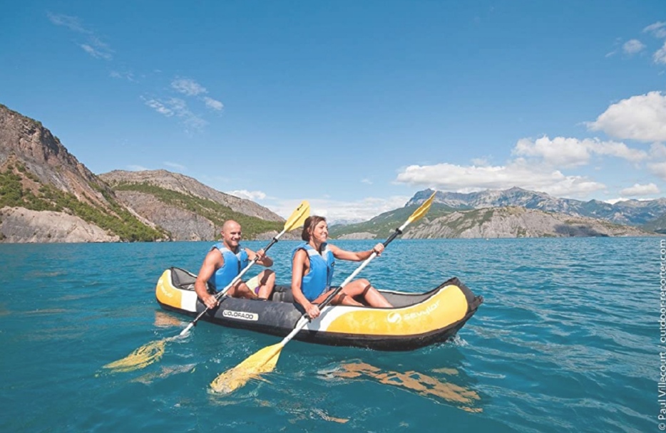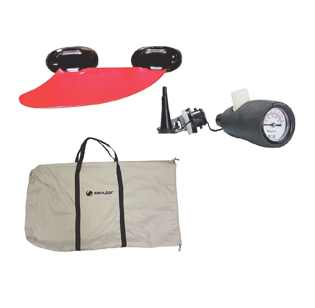 Capacidad: 2 adultosConvertir entre 2 o 1 persona kayakCapacidad de carga máx.: 200 kgPeso: 15 kgTamaño inflado: 331 x 88 cmSe infla en menos de 10 minutosCarcasa de poliéster ultraduraderoCámaras laterales de PVC y cámaras de piso con construcción de vigas en I3 cámaras independientesVálvula de Boston para un fácil inflado/desinfladoManómetro para control de presión2 asientos extraíbles y ajustables con respaldo alto y zona de asiento inflable4 asas de transporteSEVYLOR Colorado Kayak viene con 1 paleta de aluminio (se puede utilizar como paleta doble o dos paddles picaduras), bomba de pie, bolsa de transporte, manómetro, aleta y kit de reparaciónFunciones y detalles
